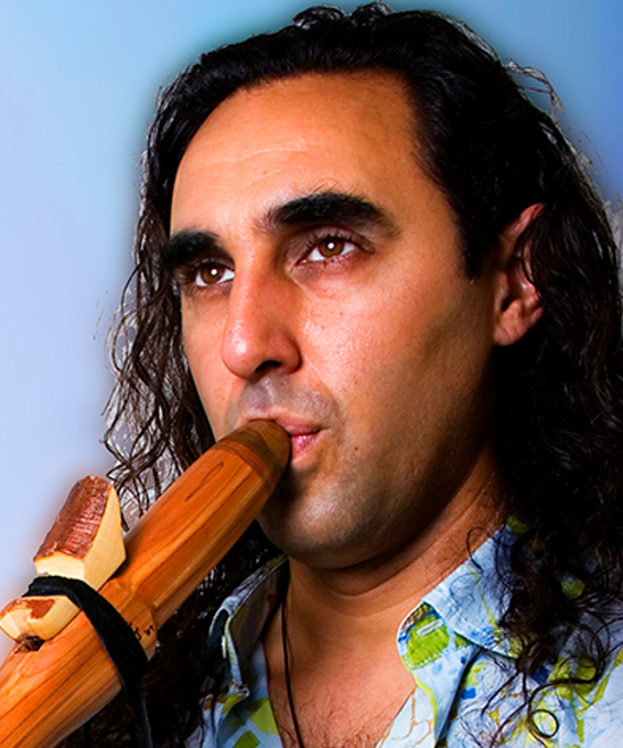 At the opening of the new Pacific Standard Time: LA/LA exhibitions at AD&A Museum, Sacred Art in the Age of Contact and The Schoolhouse and the Bus, there was a musician performing, Emiliano Campobello. He is a local artist, mural painter, and UCSB graduate. He played traditional Chumash music on a wooden pipe, called a sacred flute, similar to a recorder in look and reminiscent of an oboe in sound. I had been through the Sacred Art exhibit before, without the music. It was a powerful exhibit, but I didn’t connect to the Chumash culture as much as I did with the background music floating hauntingly through the space. It drew me back in time, to a place where the Chumash were fighting to keep their religion and culture alive. One where they buried their sacred noisemakers for safekeeping and began to turn their sacred baskets into aesthetic and useful objects for their Spanish Mission masters. It was so much more poignant that way.