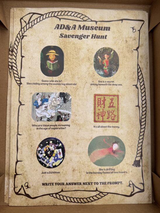 That thoughtfulness made a real impact. Many students attended throughout the night, some stepping into the AD&A Museum for the very first time! The scavenger hunt encouraged close looking and curiosity. As the attendees searched for clues and solved riddles, they uncovered layers of meaning within the exhibitions on view.