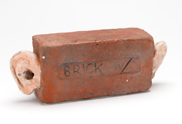 Robert Arneson (b. United States, 1930-2019), Ear Brick, ca. 1968, ceramic with partial glaze, 4 3/4 x 14 1/2 x 3 1/4 in. The Ruth Schaffner Collection, 1988.4.