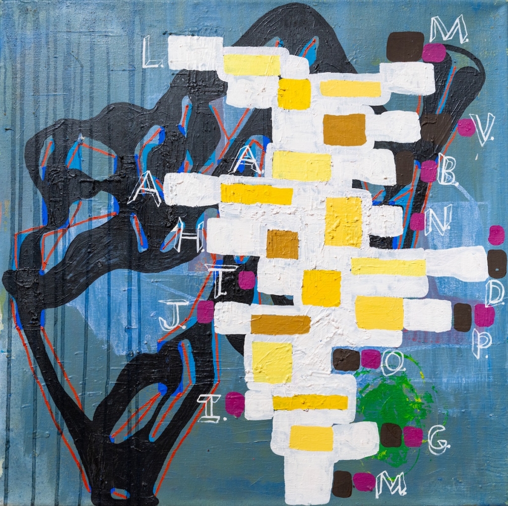 Steve Roden (b. United States, 1964-2023), 15 Planes, 2000, oil and polyurethane on linen, 30 1/8 x 30 1/8 x 1 in. Gift of Steve and Sari Roden Family Trust, 2025.005.011.