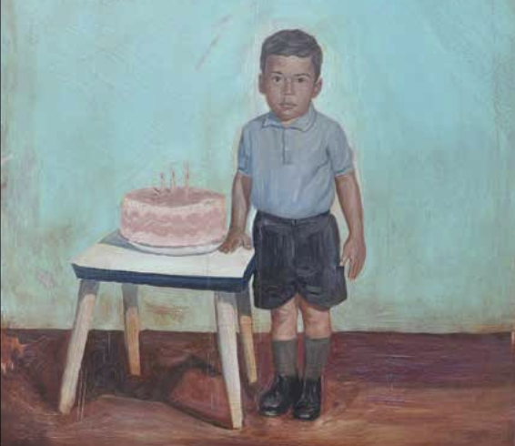 Salomon Huerta, Las Tres Novelas de mi Vida (detail), oil on tin, 23 x 20 in.
