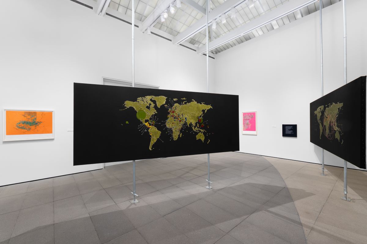 Tiffany Chung: indelible traces is the first comprehensive museum survey of Vietnamese American artist, Tiffany Chung (born 1969; MFA, UCSB ’00). Including more than 70 artworks that highlight Chung’s expansive 25-year career, these works pointedly reveal histories that have too often been overlooked or intentionally ignored. She excavates the complex and often hidden entanglements—of history, politics, geography, economy, and climate—that accrue and shape landscapes, built environments, conflicts, and human migration. Best known for her intricately drawn and embroidered maps, a major part of Chung’s work interrogates the nexus of the climate-conflict crisis, which views climate disasters and armed conflicts as dual systemic causes of forced migration. However, Chung’s conceptual focus is much broader than this frame implies. Beyond charting human movements, her work unravels and reweaves the entwined relationships between nature and human societies, studying the migrations of flora and fauna—particularly spices, along with the cross-border trajectories of foods, cultures, and languages. She often mines the histories of single sites to reveal systems of power and cycles of transformation—natural or human-made, resilient or destructive—across stretches of geological and generational time. Chung employs extensive archival research to fill in the gaps that official histories and popular discourses overlook or intentionally disremember. She merges individual voices and collective memories with landscapes as active sites of remembrance through her rigorous research and qualitative analysis to challenge the power of mapping and grand historical narratives. Ultimately, her artworks question not only how history is told but also who tells that history, who belongs within it, and who and what are excluded.