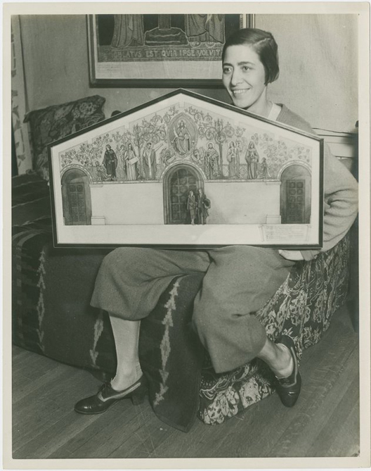 Lucile Lloyd (1994-1941), muralist; Photographer unknown, “Lucile Lloyd: proposed mural decoration for the Ojai Presbyterian Church (Ojai, Calif.),”UCSB ADC Omeka, http://www.adc-